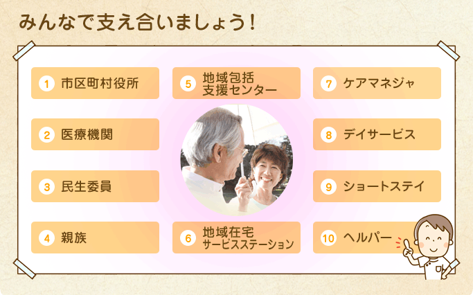 ご自分やご家族の方が、日常生活を送る上で、困ったことがありましたら、「居宅介護支援事業所」までお電話ください。
